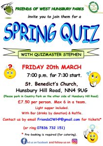 Friends of West Hunsbury Spring Quiz, Friday 20th March